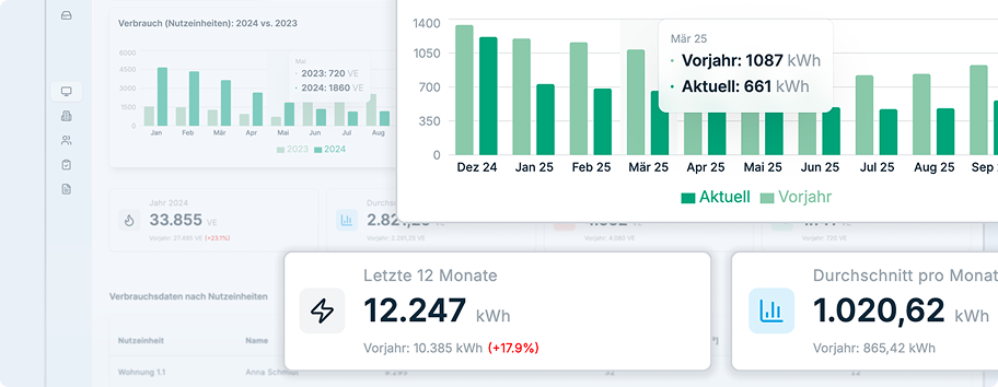 Die erfassten Daten werden in übersichtlichen Dashboards dargestellt, die sowohl für Eigentümer als auch für Mieter leicht verständlich sind.